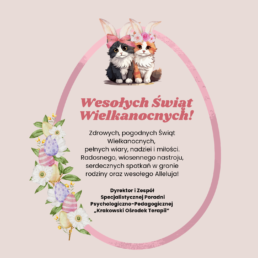 z okazji nadchodzących Świąt Wielkanocnych Dyrektor oraz Zespół SPPP „Krakowski Ośrodek Terapii” składają najserdeczniejsze życzenia: